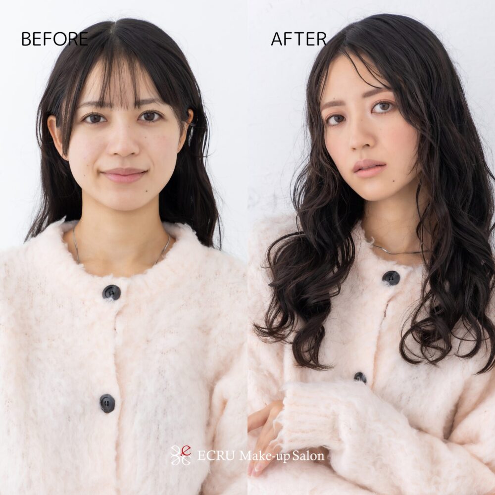 モデルさんのクールな要素も活かした儚げ柔らかメイク。