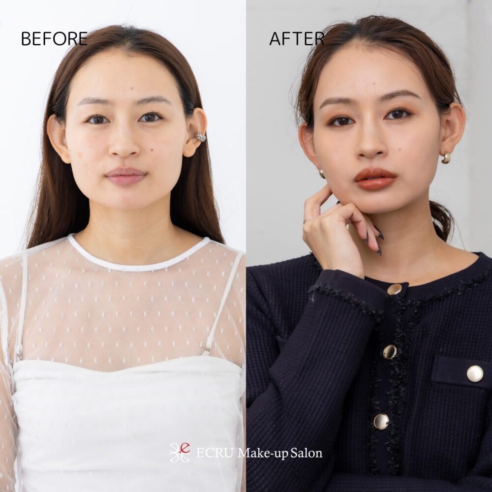 - 【アイメイク】オレンジブラウン 【チーク】ベージュ 【リップ】ブラウンベージュ