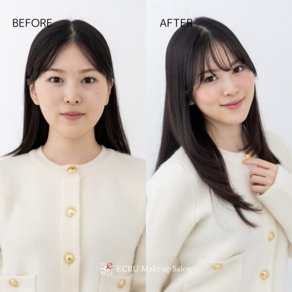 肌はコントロールカラーと部分的なカバーで軽やからな仕上がりに。
